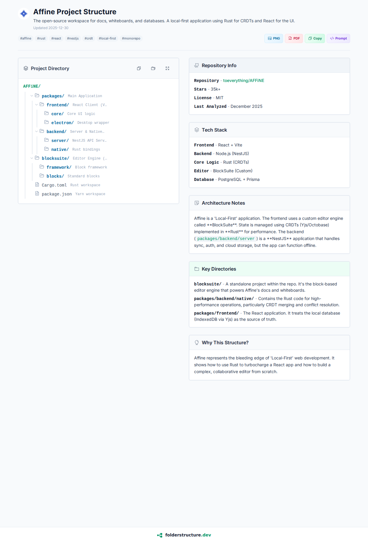 Affine represents the bleeding edge of 'Local-First' web development. It shows how to use Rust to turbocharge a React app and how to build a complex, collaborative editor from scratch.