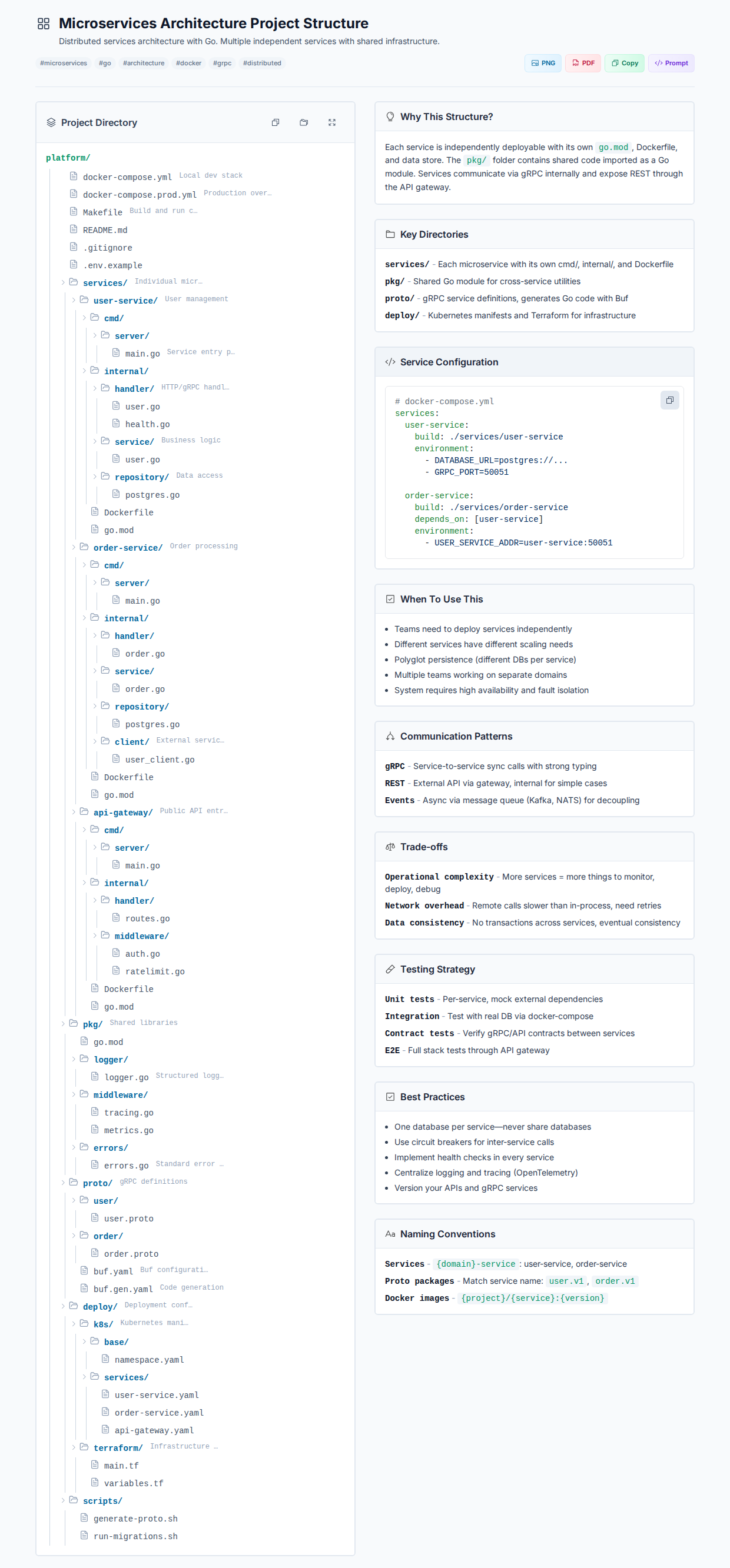 - services/-Each microservice with its own cmd/, internal/, and Dockerfile