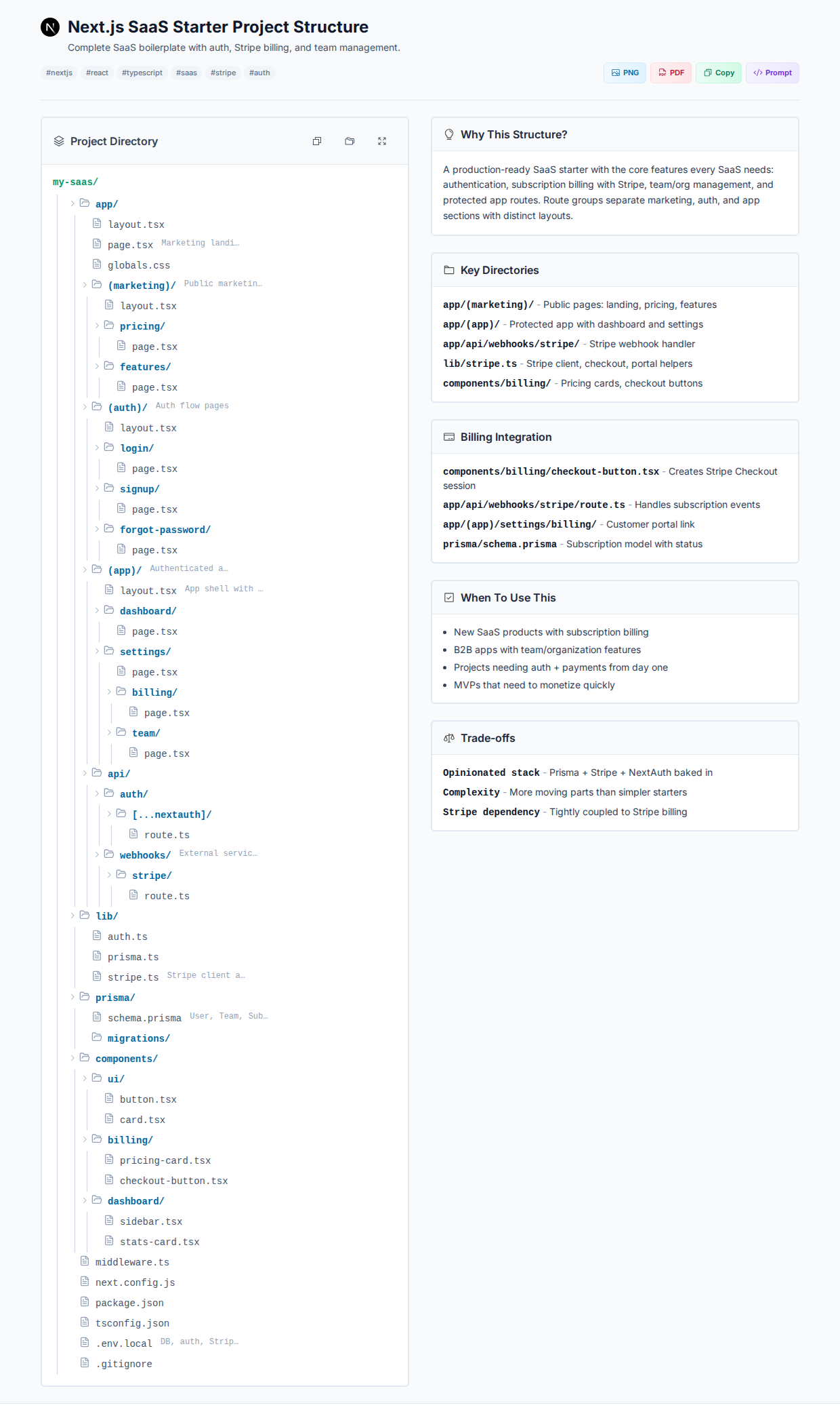 - Opinionated stack-Prisma + Stripe + NextAuth baked in